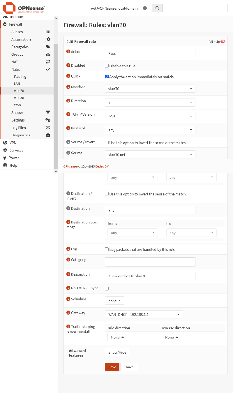 3. Pass → Destino: any (Internet) Aplicación de la VLAN en Proxmox Virtual Environment #